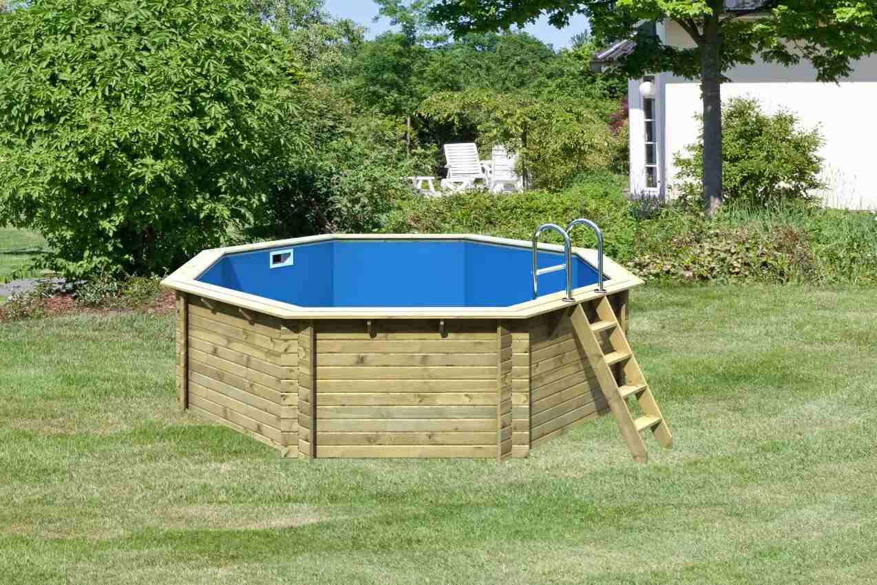 Konstrukce bazénu je vyrobena z dřevěných profilů (systém dvojité pero / drážka) síly 38 mm. Vnitřní prostor je vyplněn pevnou modrou PVC fólií o síle 0,6 mm.
