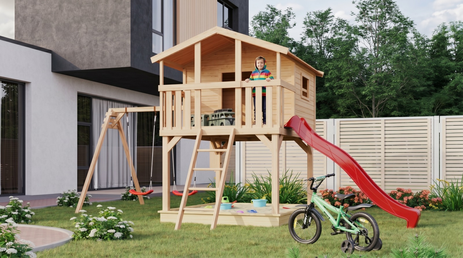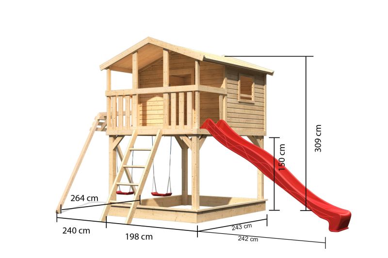 - hřiště obsahuje červenou skluzavku 300 cm