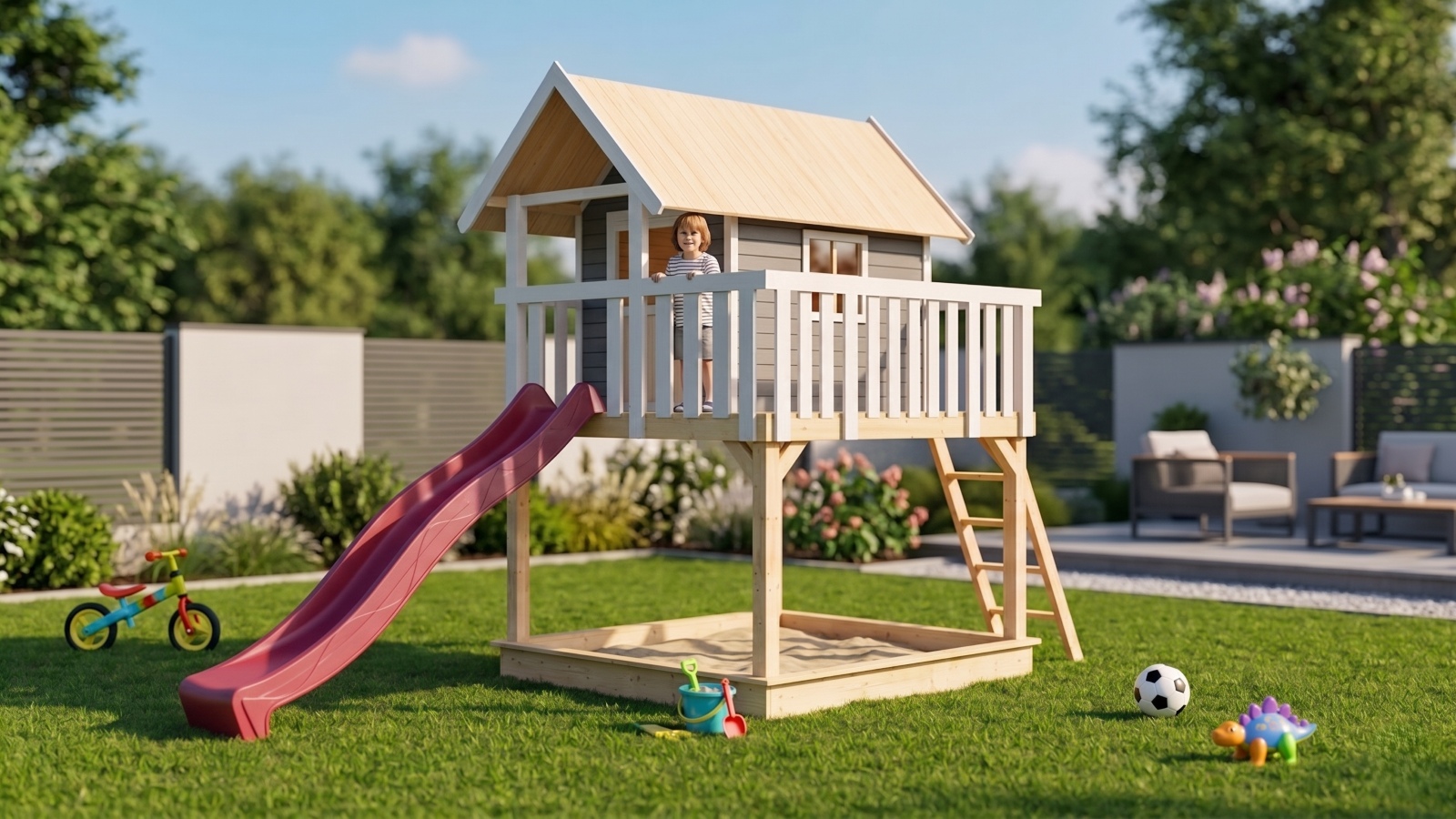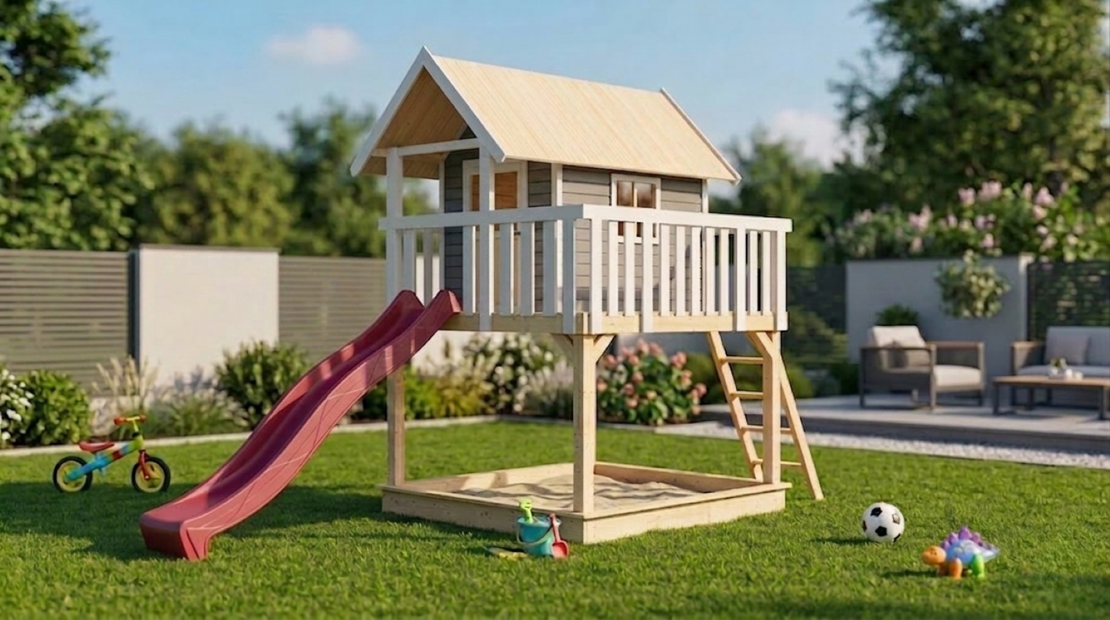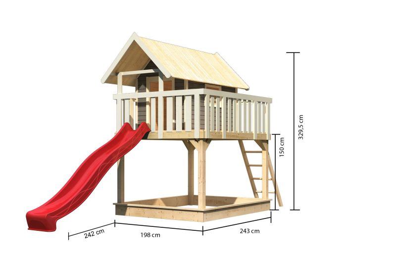 Tento model hřiště dodáváme v profesionálním nátěru KARIBU (terragrau RAL 060 40 05):