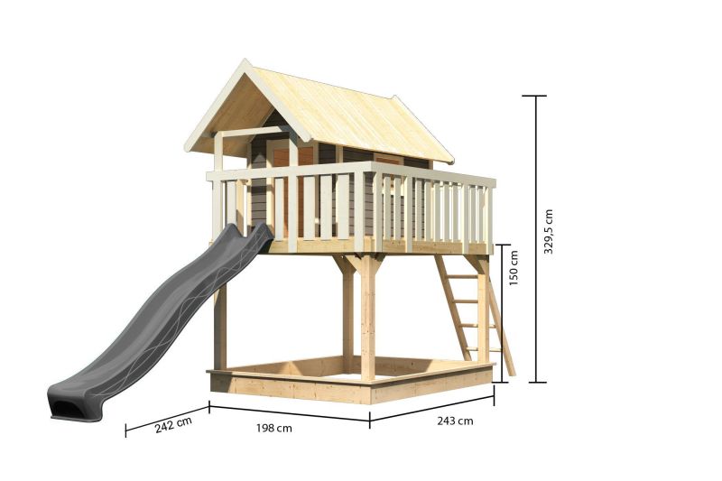 Tento model hřiště dodáváme v profesionálním nátěru KARIBU (terragrau RAL 060 40 05):