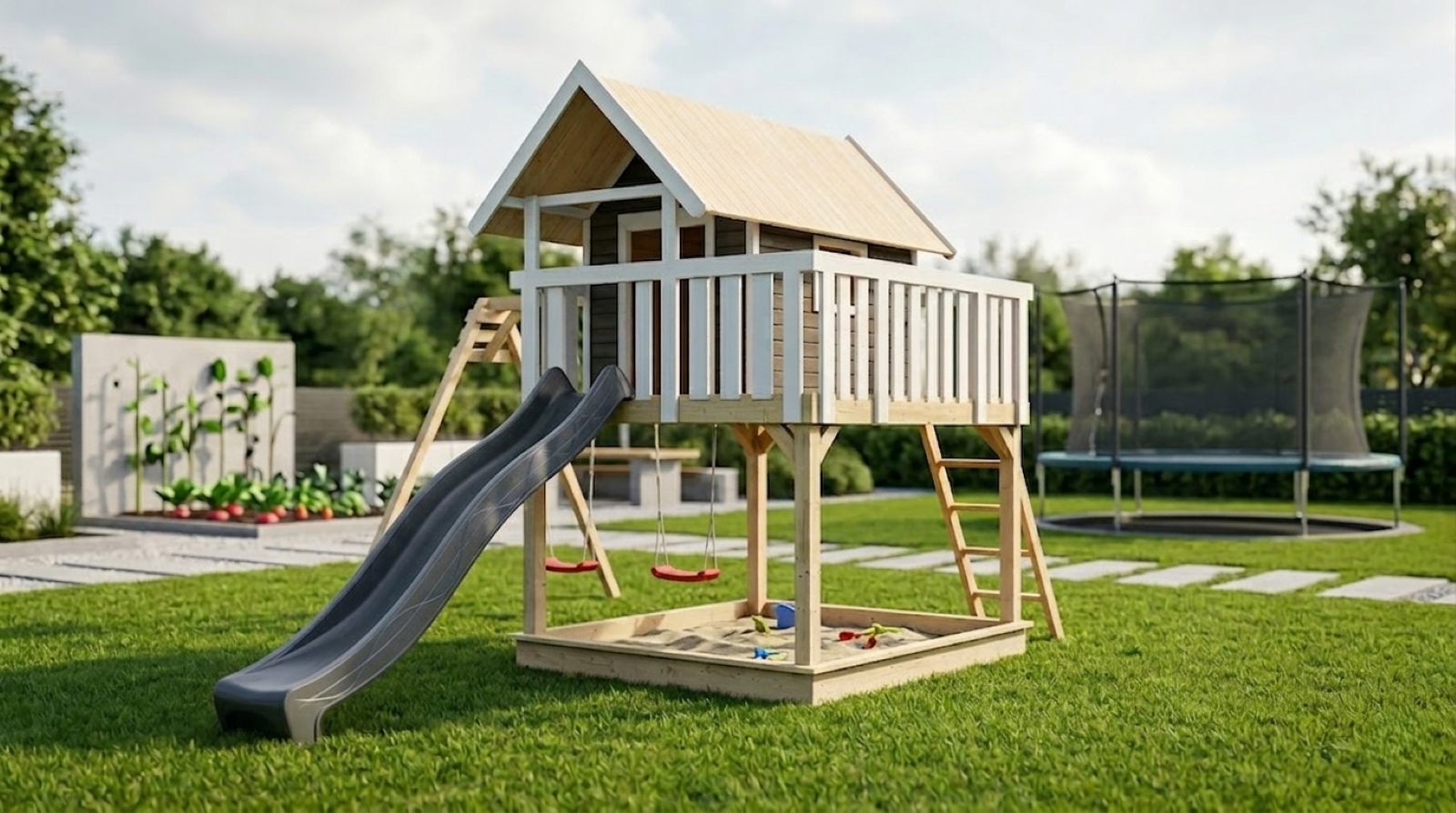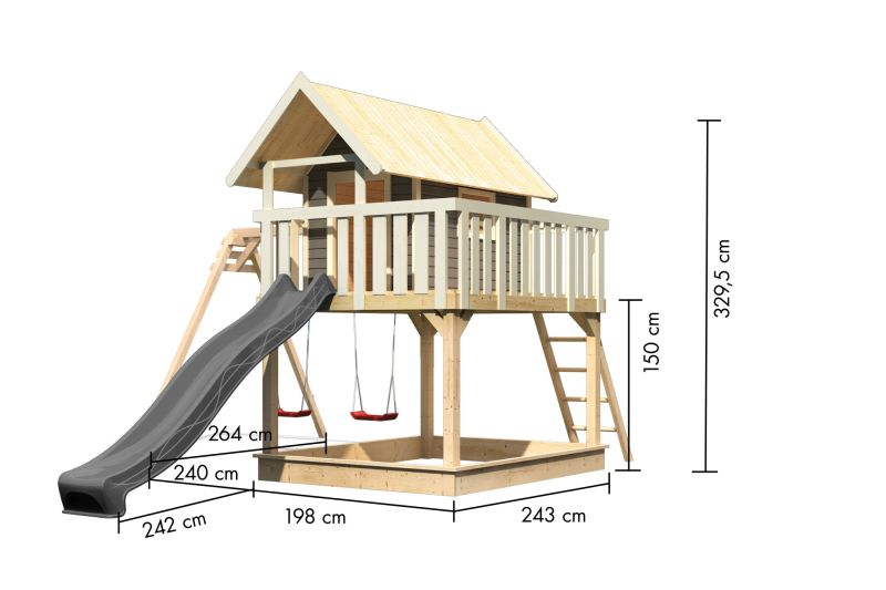 Tento model hřiště dodáváme v profesionálním nátěru KARIBU (terragrau RAL 060 40 05):