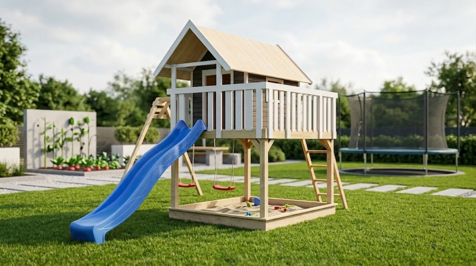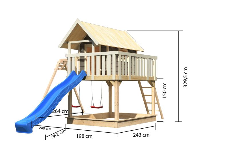 Tento model hřiště dodáváme v profesionálním nátěru KARIBU (terragrau RAL 060 40 05):