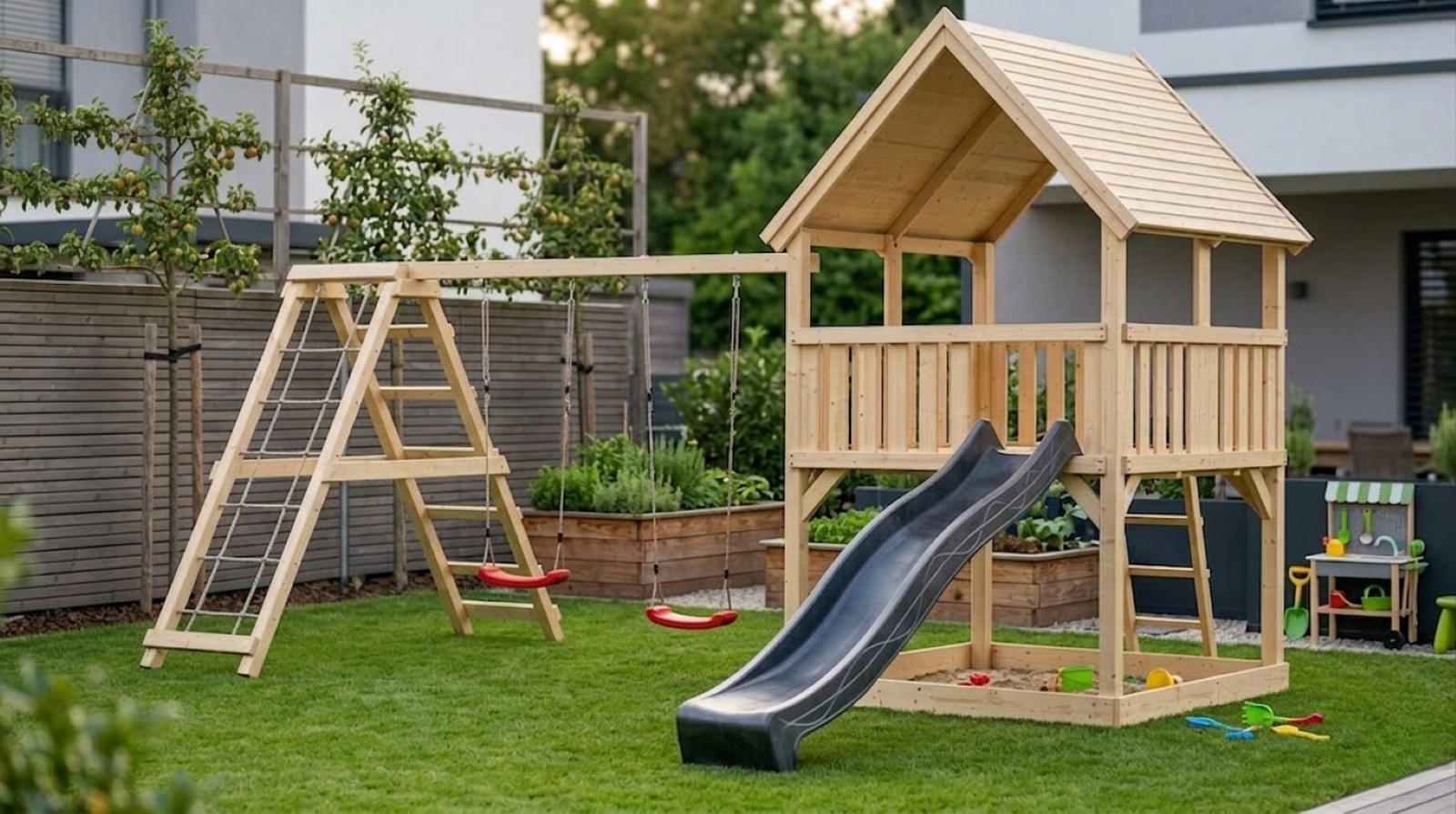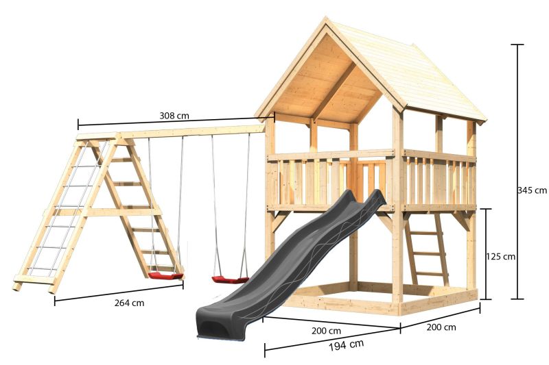Dětské hřiště KARIBU LUIS poskytuje dětem spoustu možností ke hrám. Nabízí vše k tomu, aby děti mohly prožít veškeré své hrací fantazie. Stejně jako u všech našich dětských hřišť i u modelu KARIBU LUIS používáme výhradně to nejlepší smrkové dřevo. Hřiště má nosné sloupy o tloušťce 90 x 90 mm a je vyrobené z dřevěných profilů o síle 18 mm (spoje v systému pero / drážka). Naše dřevo pochází ze vzdáleného severu Evropy a je chemicky naprosto neošetřené. V důsledku toho je prosté všech známých problematických látek. Díky výšce plošiny 125 cm nabízí hřiště KARIBU LUIS dětem dokonalý výhled na zahradu. Hřiště je standardně vybaveno robustním dřevěným žebříkem se 4 příčkami a pískovištěm pod věží. Dětské hřiště KARIBU LUIS má samozřejmě certifikát TÜV Nord ověřující bezpečnost výrobku (GS) podle DIN EN 71-1, DIN EN 71-3, DIN EN 71-8 a AfPS GS 2014.