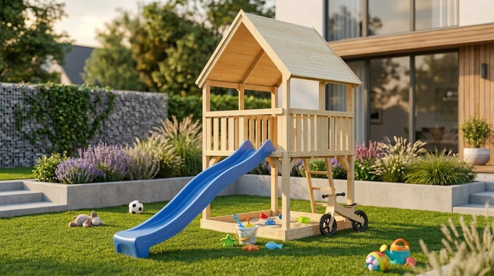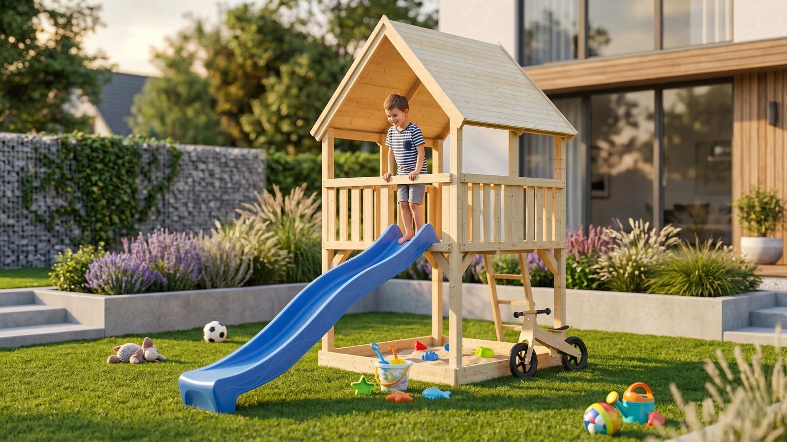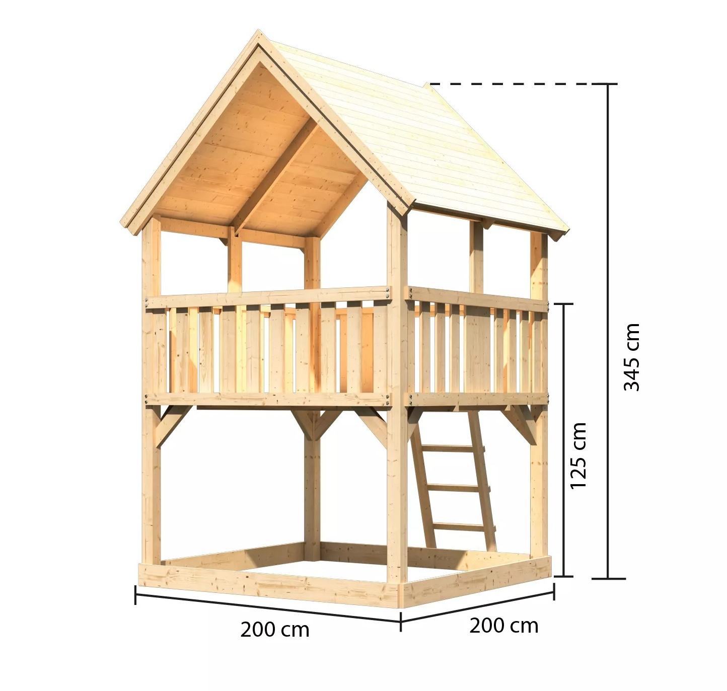 Dětské hřiště KARIBU LUIS poskytuje dětem spoustu možností ke hrám. Nabízí vše k tomu, aby děti mohly prožít veškeré své hrací fantazie. Stejně jako u všech našich dětských hřišť i u modelu KARIBU LUIS používáme výhradně to nejlepší smrkové dřevo. Hřiště má nosné sloupy o tloušťce 90 x 90 mm a je vyrobené z dřevěných profilů o síle 18 mm (spoje v systému pero / drážka). Naše dřevo pochází ze vzdáleného severu Evropy a je chemicky naprosto neošetřené. V důsledku toho je prosté všech známých problematických látek. Díky výšce plošiny 125 cm nabízí hřiště KARIBU LUIS dětem dokonalý výhled na zahradu. Hřiště je standardně vybaveno robustním dřevěným žebříkem se 4 příčkami a pískovištěm pod věží. Dětské hřiště KARIBU LUIS má samozřejmě certifikát TÜV Nord ověřující bezpečnost výrobku (GS) podle DIN EN 71-1, DIN EN 71-3, DIN EN 71-8 a AfPS GS 2014.