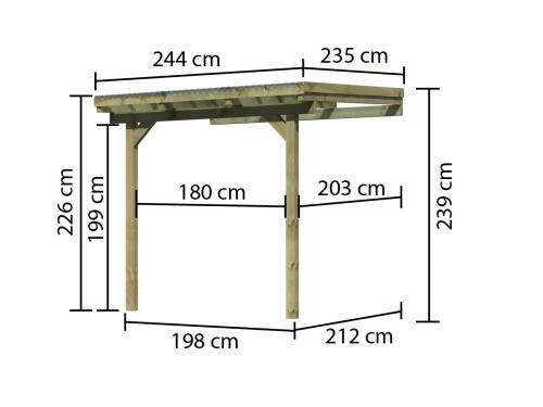 Dřevěná pergola ke zdi, ve které naleznete příjemné místo odpočinku hned vedle vašeho domu. Konstrukce pergoly je z tlakově impregnovaného borovicového dřeva, které se vyznačuje zvýšenou odolností vůči klimatickým vlivům. Nosné sloupy mají průměr 9 x 9 cm. Střecha je vyrobená z lehce namodralých průhledných PVC trapézových desek (tato verze prosklení nemá záruku na nerozbitnost krupobitím).
