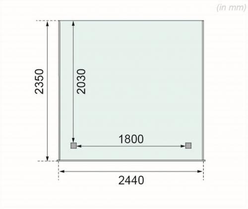 - rozměry půdorysu: délka 244 x hloubka ke zdi 235 cm
