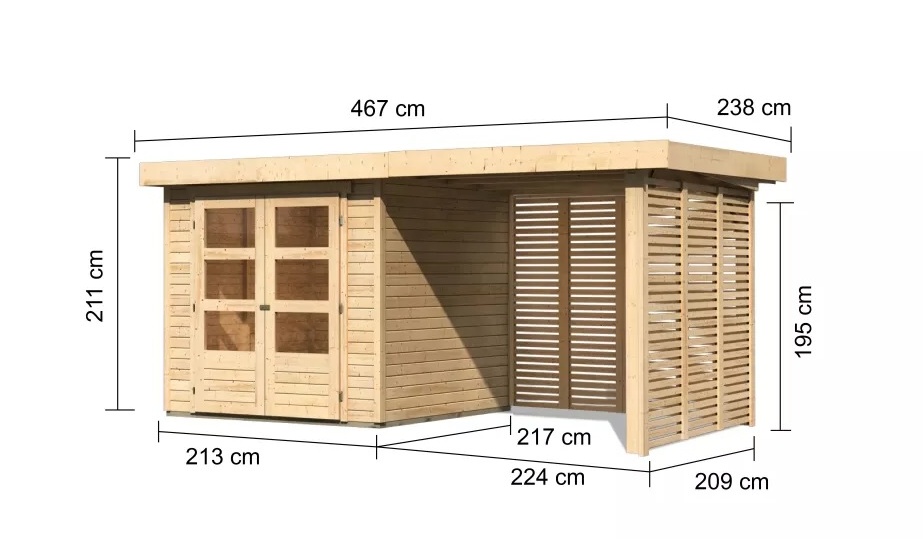 dřevěný domek KARIBU ASKOLA 2 + přístavek 240 cm včetně zadní a boční stěny (9166) natur