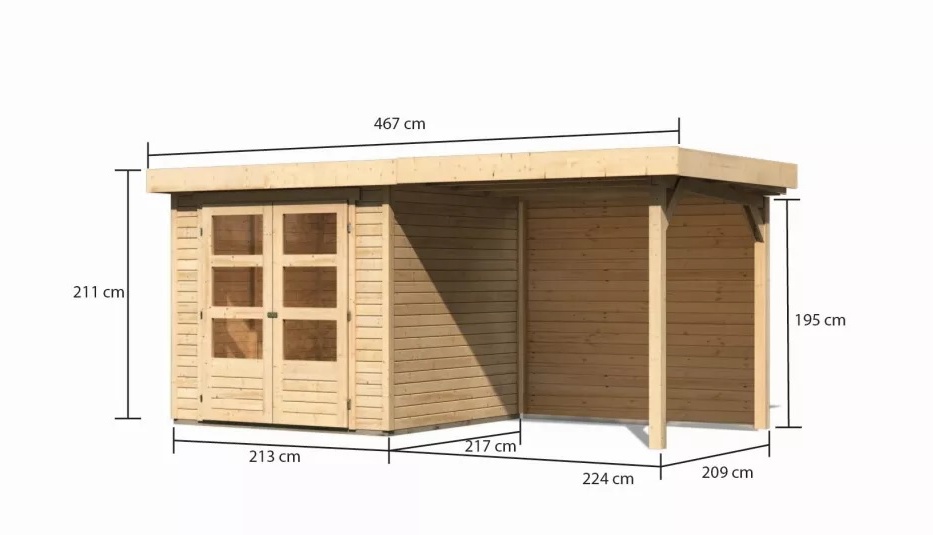 dřevěný domek KARIBU ASKOLA 2 + přístavek 240 cm včetně zadní stěny (9164) natur