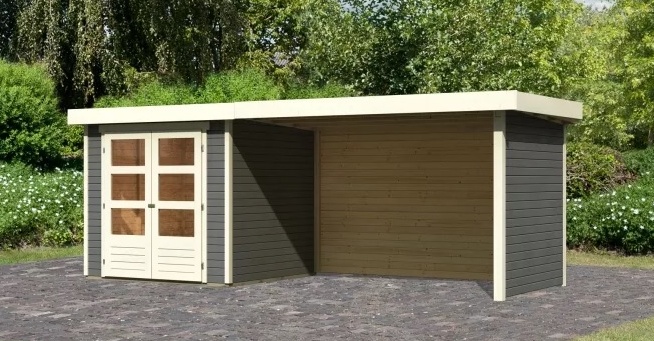 dřevěný domek KARIBU ASKOLA 2 + přístavek 280 cm včetně zadní a boční stěny (82922) terragrau