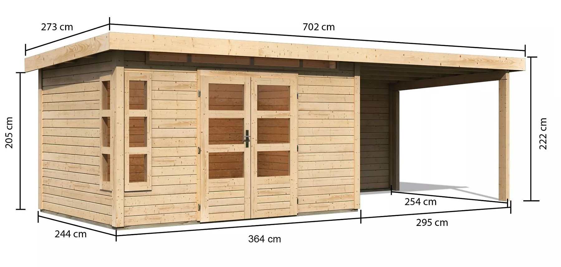 dřevěný domek KARIBU KASTORF 7 + přístavek 320 cm včetně zadní stěny (31558) natur