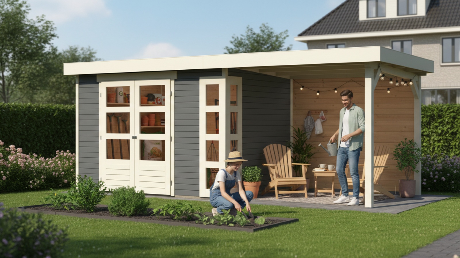 dřevěný domek KARIBU KERKO 4 + přístavek 240 cm včetně zadní stěny (9190) terragrau