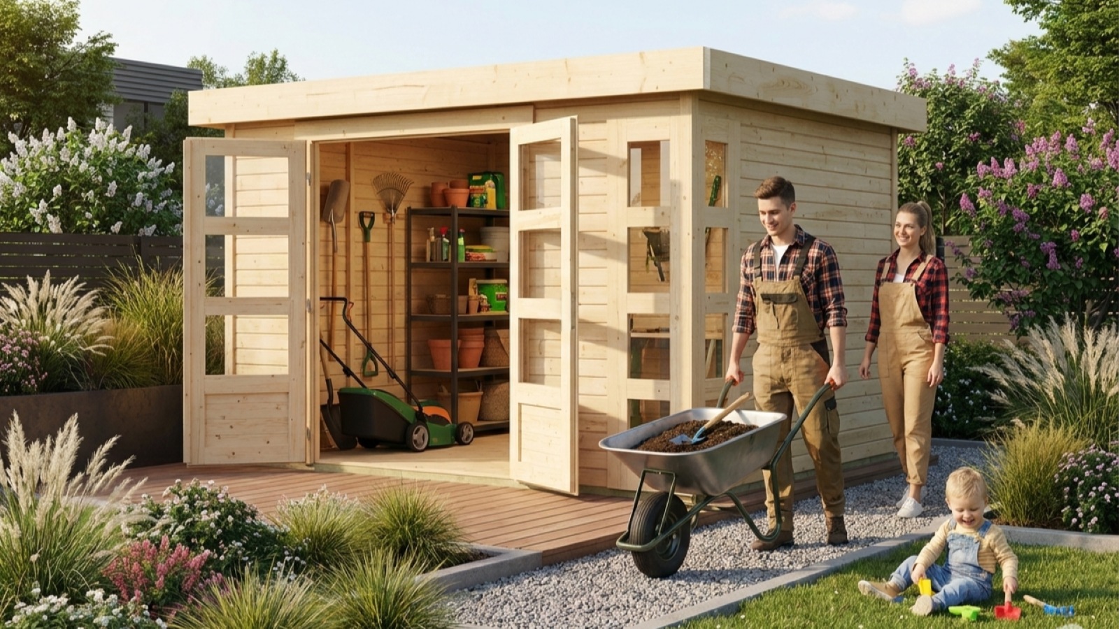 Základní model dřevěného domku pro vaši zahradu. Tento model má pultovou střechu a dvoukřídlé dveře na pantech s oknem v každém křídle. Stavebním materiálem domku jsou dřevěné profily síly 19 mm perfektně vyfrézované ze severského smrku. Dodáváme jako stavebnici v rozloženém stavu, kde stěny tvoří jednotlivé dřevěné profily, které pouze sesadíte k sobě a sešroubujete, střechu tvoří celistvá deska. To garantuje extrémně jednoduchou montáž, kterou zvládne každý český kutil.