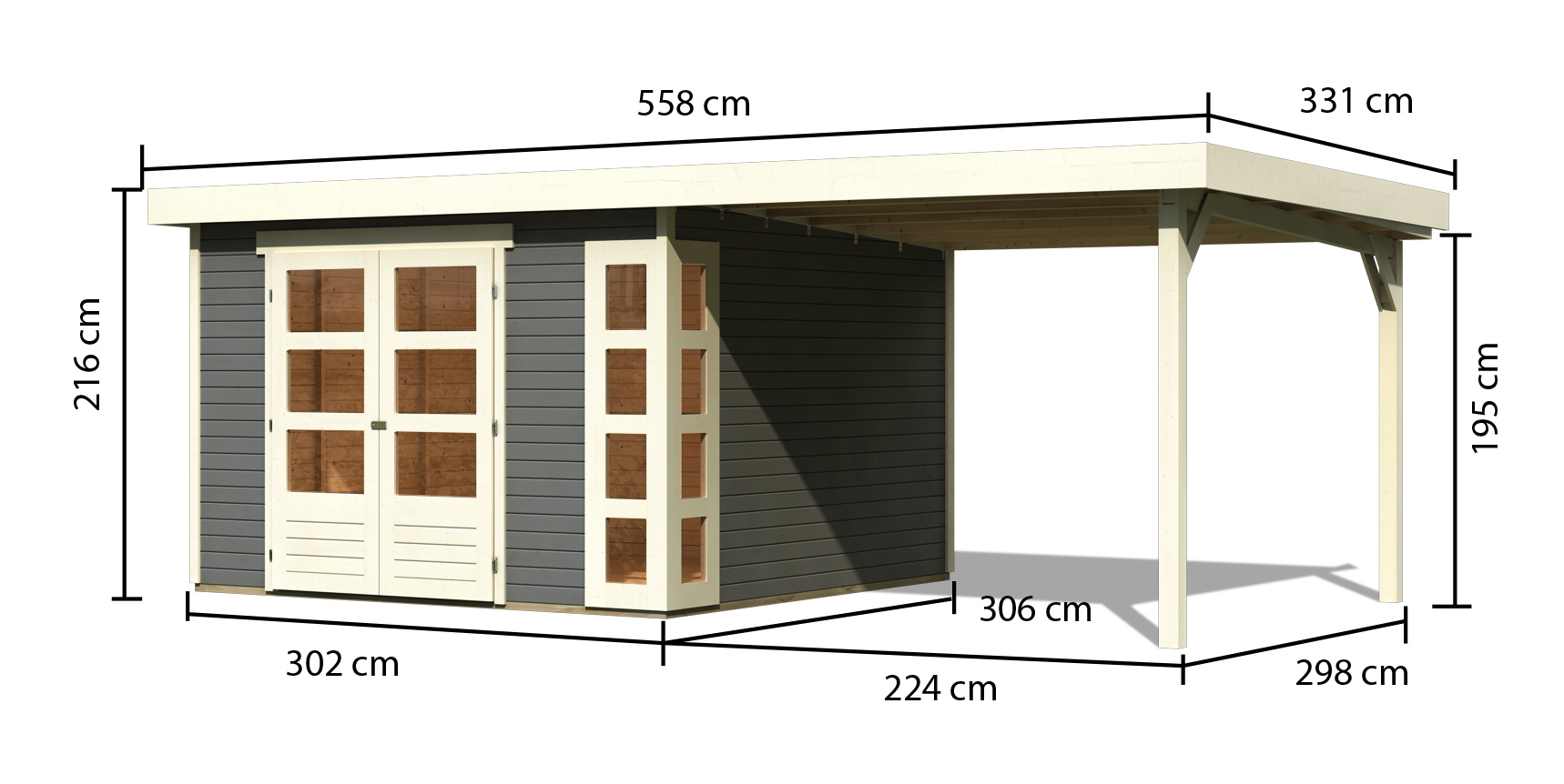 dřevěný domek KARIBU KERKO 6 + přístavek 240 cm (38732) terragrau