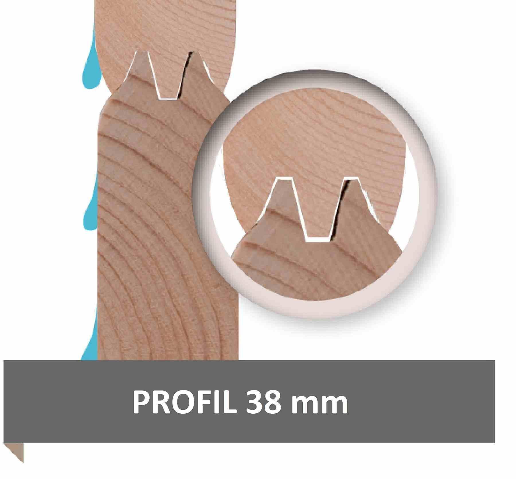 - dřevěné profily síly 38 mm