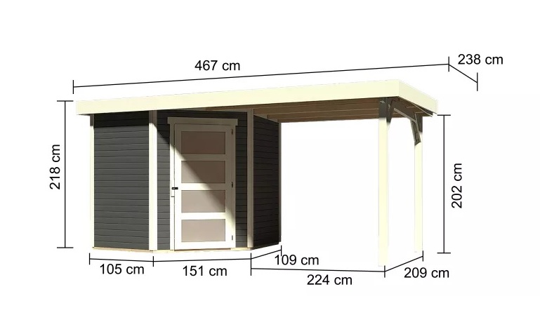 dřevěný domek KARIBU SCHWANDORF 3 + přístavek 240 cm (77739) terragrau