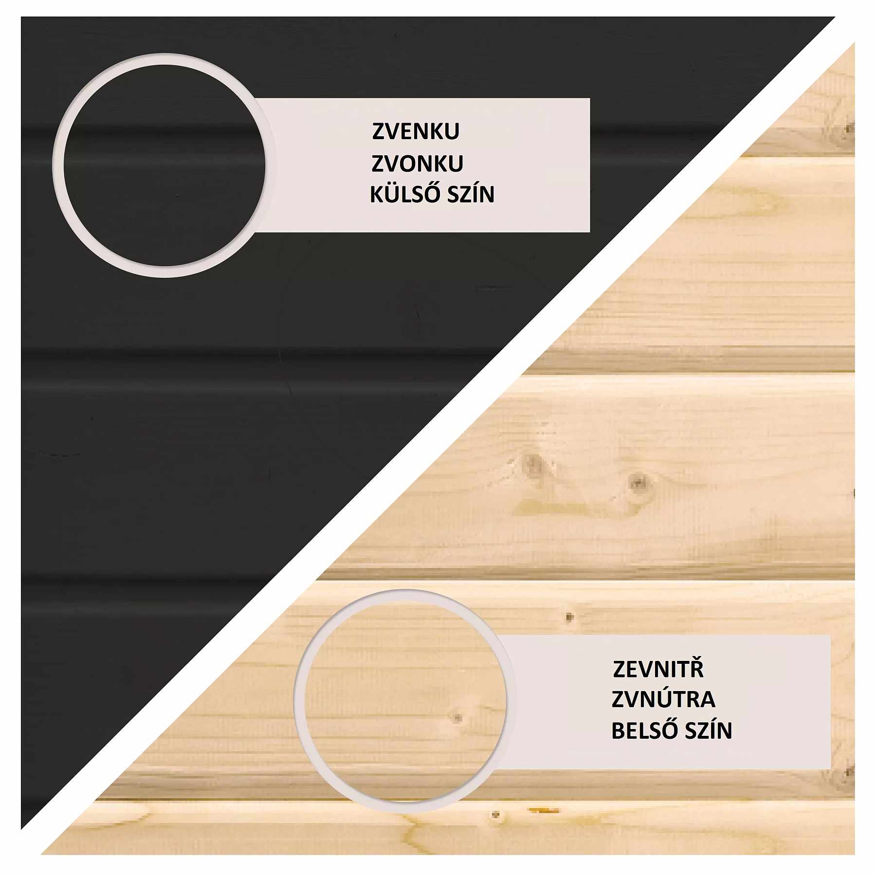 Tento model domku dodáváme v profesionálním nátěru KARIBU (odstín černý RAL 9005):
