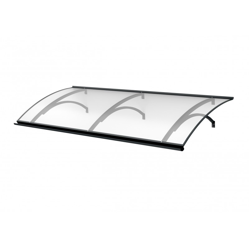 Aluminiowy baldachim wejściowy, antracyt, szer 1970 x gł 870 x wys 280 mm, przezroczysty poliwęglan komórkowy 4,5 mm.