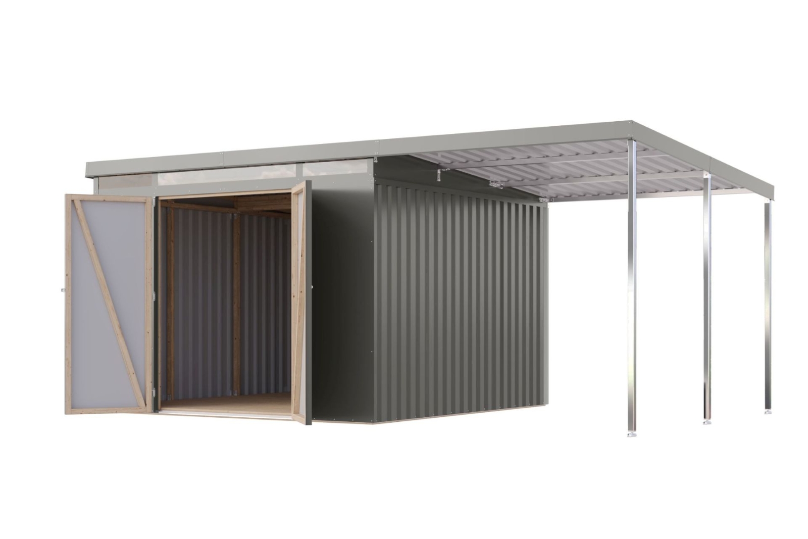 plechový domek KARIBU IRIDIUM 3,5 + přístavek 200 cm (48498) šedý
