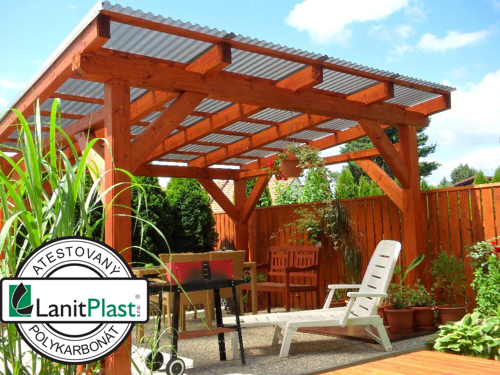 Bronzová polykarbonátová trapézová deska s jemnou povrchovou strukturou, síla 0,8 mm, oboustranný 2UV filtr.
