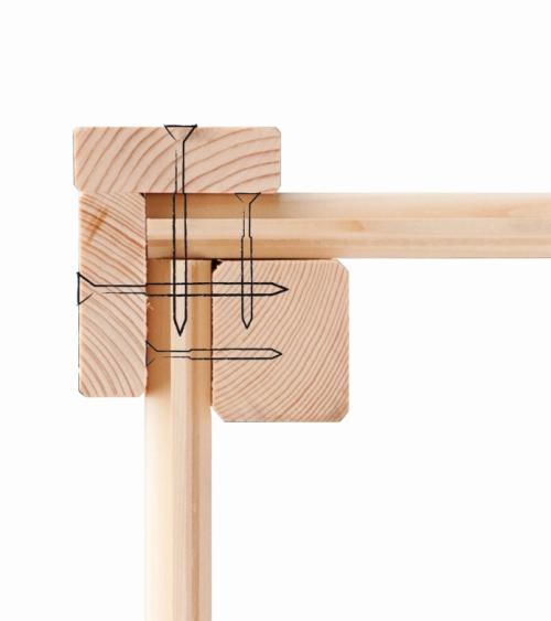 Pozor, balík s materiálom nie je vodotesný. Fólia chráni drevo len proti znečisteniu. Skladujte preto stavebnú sadu až do konečnej montáže v suchu, nie priamo položenú na zemi, chránenú proti vplyvom počasia (vlhkosť, slnko atď.). Neskladovať vo vykurovanom priestore!