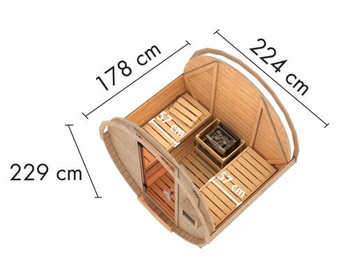 Vonkajší model sudovej fínskej sauny pre vašu záhradu. Dizajnovo zaujímavá sauna, ktorá bude vhodným doplnkom na Vašu záhradu. Jej výrobca, firma KARIBU HOLZTECHNIK z nemeckých Brém, dokázala svojimi výrobkami úspešne nadviazať na stáročnú tradíciu škandinávskeho saunovania a súčasne do nej zapracovať dnešné moderné technológie. Dodávame ako stavebnicu v rozloženom stave, kde plášť sauny tvoria jednotlivé drevené profily, ktoré iba zosadíte k sebe a zoskrutkujete. To garantuje jednoduchú montáž, ktorú zvládne každý slovenský kutil.