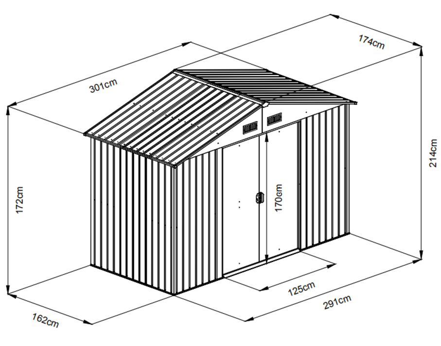- vnější rozměry (půdorys střechy) - š 291 x d 162 x v 214 cm