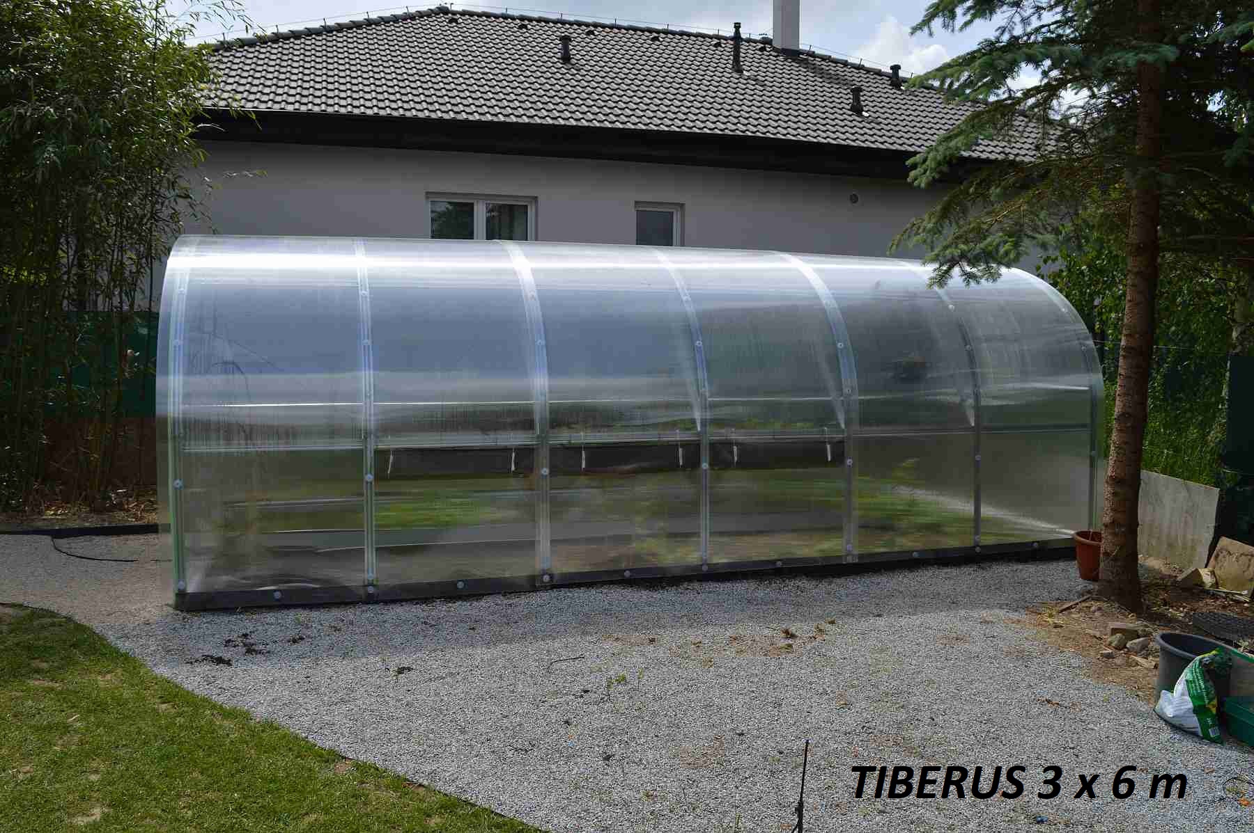 - skleníky TIBERUS SE s deskami 6 mm rozměr 3 x 4 m dodáváme vlastní dopravou, konstrukci v papírových kartonech a desky volně ložené